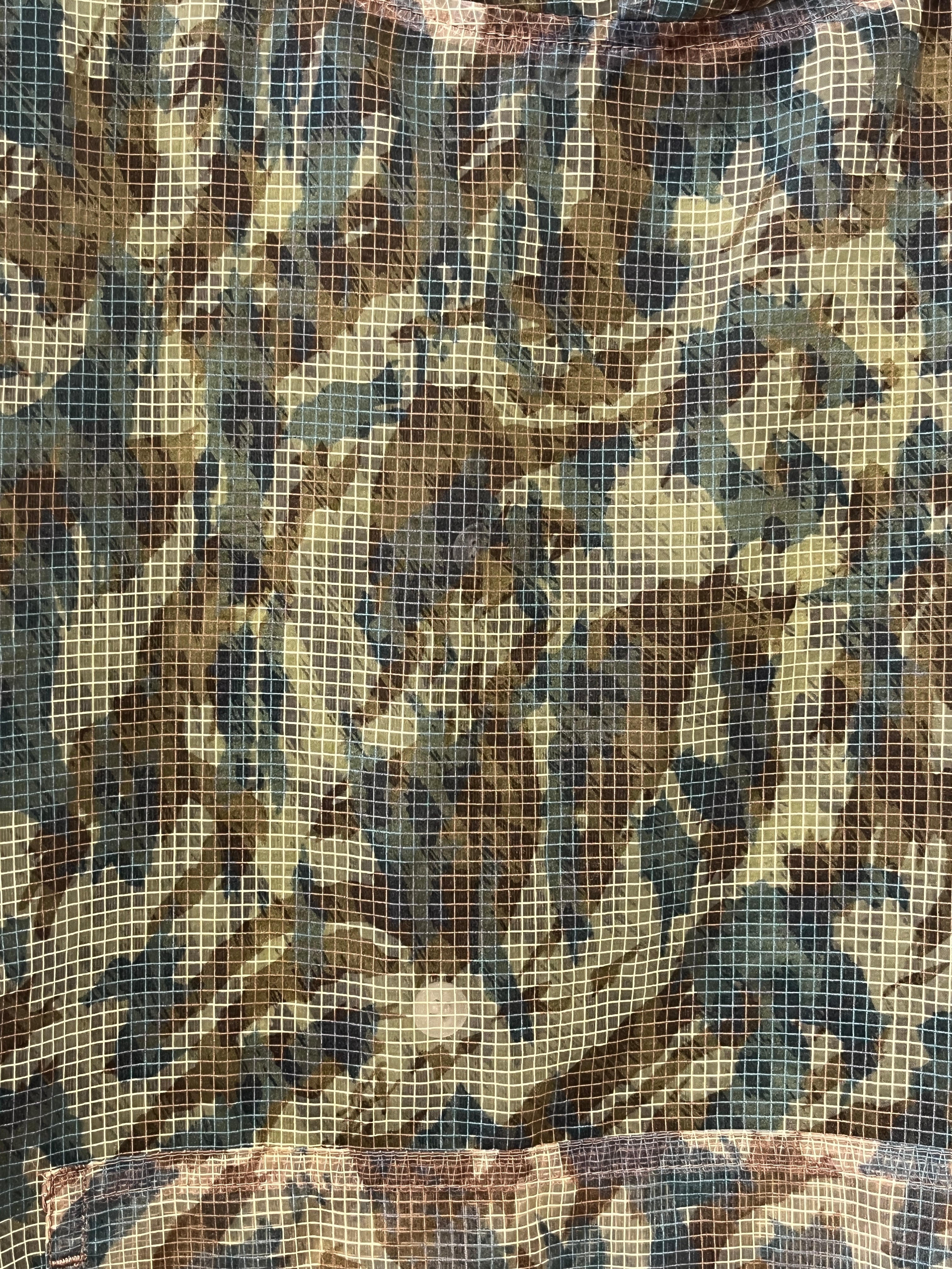 ナイロン100%のメッシュにカモフラージュ柄をインクジェットプリントしたフーディー。