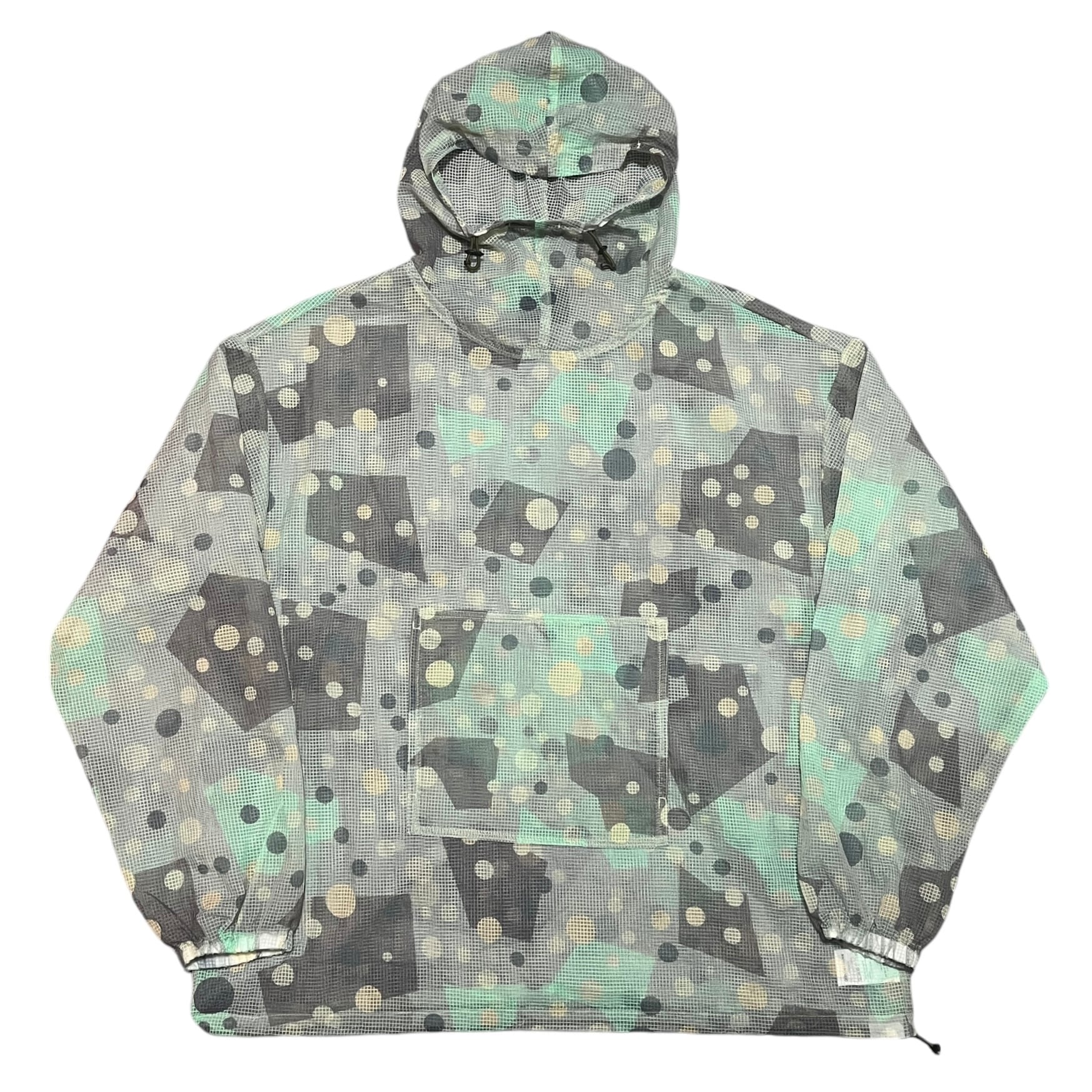 ナイロン100%のメッシュにカモフラージュ柄をインクジェットプリントしたフーディー。
